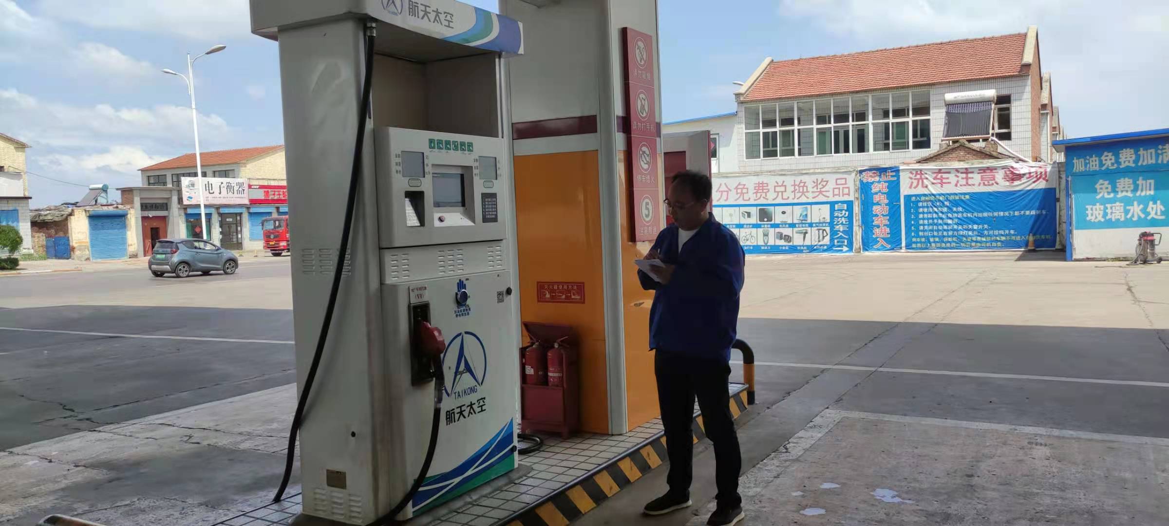 (5)隨時(shí)關(guān)注外部環(huán)境的變化情況,防止造成加油機(jī)、油罐等設(shè)施與外部建(構(gòu))筑物、企業(yè)、道路、架空電力線等設(shè)施的安全間距不足。